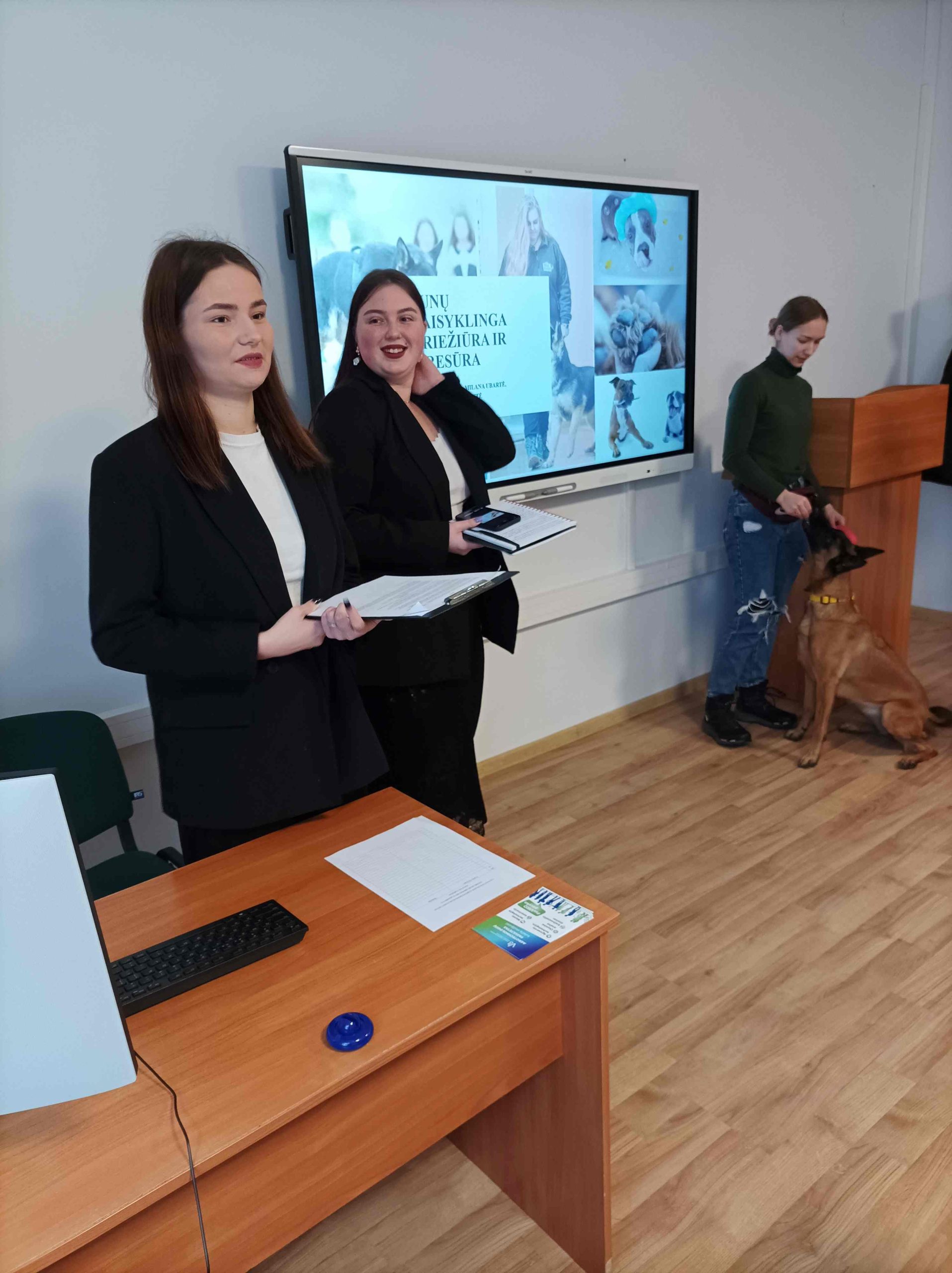 Didelio susidomėjimo sulaukė paskata „Ką kiekvienas turime žinoti apie gyvūnų priežiūrą?”. Paskaitą vedė 1 kurso veterinarijos studijų programos studentės Karolina, Milana ir Inga. Paskaitoje studentės turėjo ir ,,gyvą modelį” – Belgijos aviganių kalytę Lorą. Moksleiviai aktyviai klausinėjo, domėjosi dalykais, kurių studentės nespėjo pristatyti pamokoje: kodėl šunys bijo vandens bokšto, kiek laiko užtrunka išdresuoti šunį, kada ne per anksti ir ne per vėlu sterilizuoti gyvūną ir kt.