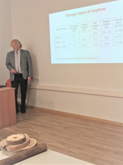 Prof. Janusz Lisowski savo paskaitos metu kalbėjo apie ateities medį, (angl. oxytree), kuris dar neturi pavadinimo ir yra vadinamas deguonies medžiu dėl 50 cm skersmens dydžio lapų. Sparčiai augdamas ir užaugindamas didelę lapų masę, oxytree sunaudoja didelius anglies dioksido kiekius ir pagamina apie 10 kartų daugiau deguonies nei kiti lapuočių medžiai. Šis medis buvo sukurtas kaip dviejų Paulovnijos veislių (lot. Paulownia elongata ir Paulownia fortunei) klonų kryžminimo rezultatas. Lomžos aukštosios agroverslo mokyklos teritorijoje yra auginami ir tiriami šie neįprastai sparčiai augantys medžiai, tad profesorius savo paskaitą gausiai iliustravo jo atliktų tyrimų rezultatais, nuotraukomis, atsivežtais medienos pavyzdžiais.