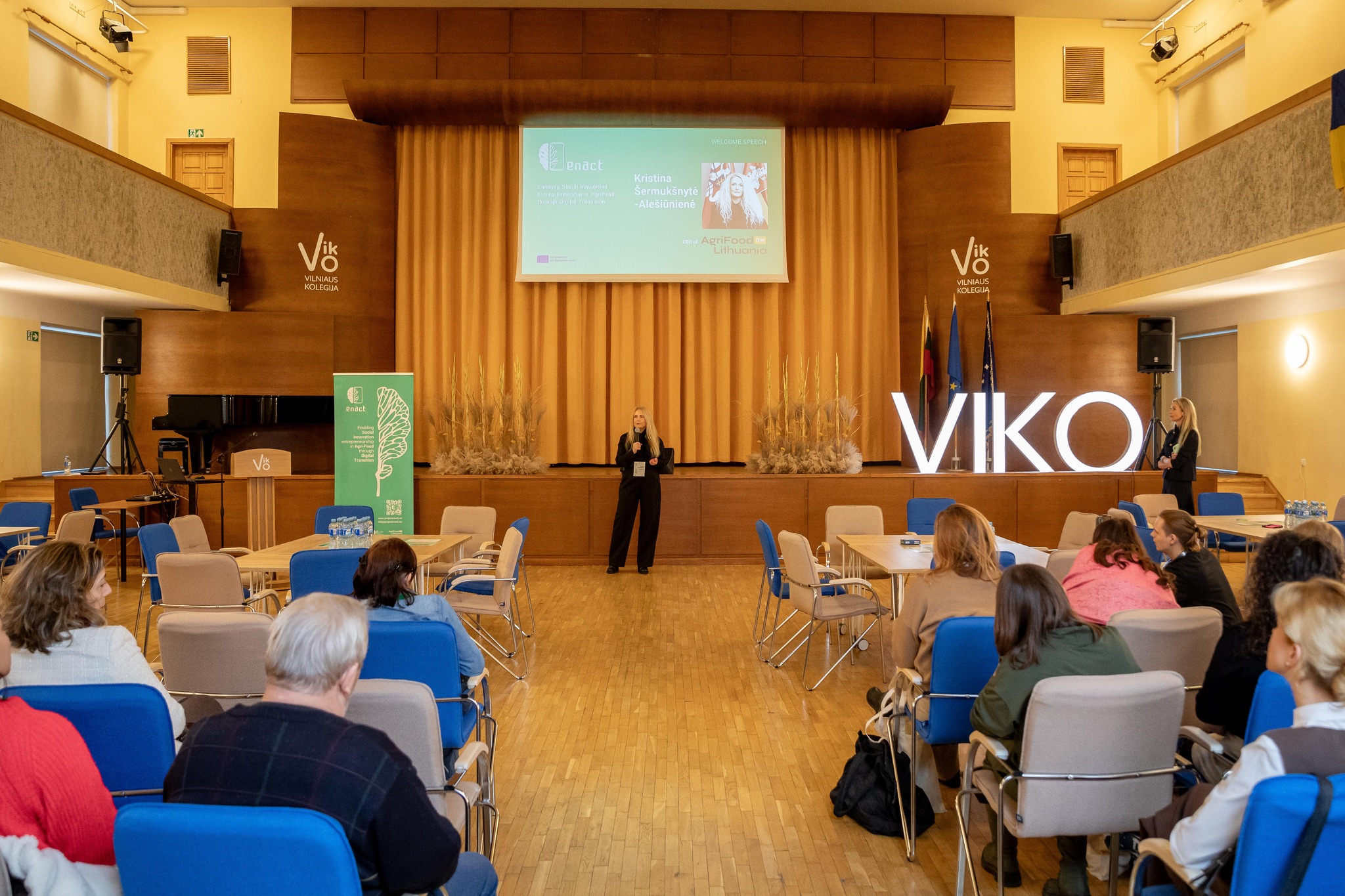Pirmadienį startavo tarptautinio projekto “ENACT” Hakatonas. Šis unikalus trijų dienų inovacijų maratonas subūrė dviejų ekosistemų: agromaisto ir socialinio verslo – ekspertus kurti ir projektuoti modernius produktus, paslaugas ir technologinius sprendimus, skirtus agromaisto sektoriaus verslams, veikiantiems socialinės ekonomikos srityje. “ENACT” projekto tikslas – skatinti Europos maisto sistemos transformaciją siekiant didesnio tvarumo, skatinant skaitmeninę transformaciją ir verslumą žemės ūkio ir maisto pramonės socialinėje ekonomikoje visoje Europoje. Norint tai pasiekti, labai svarbus tarptautinis bendradarbiavimas ir įvairių suinteresuotųjų šalių gebėjimų stiprinimas.