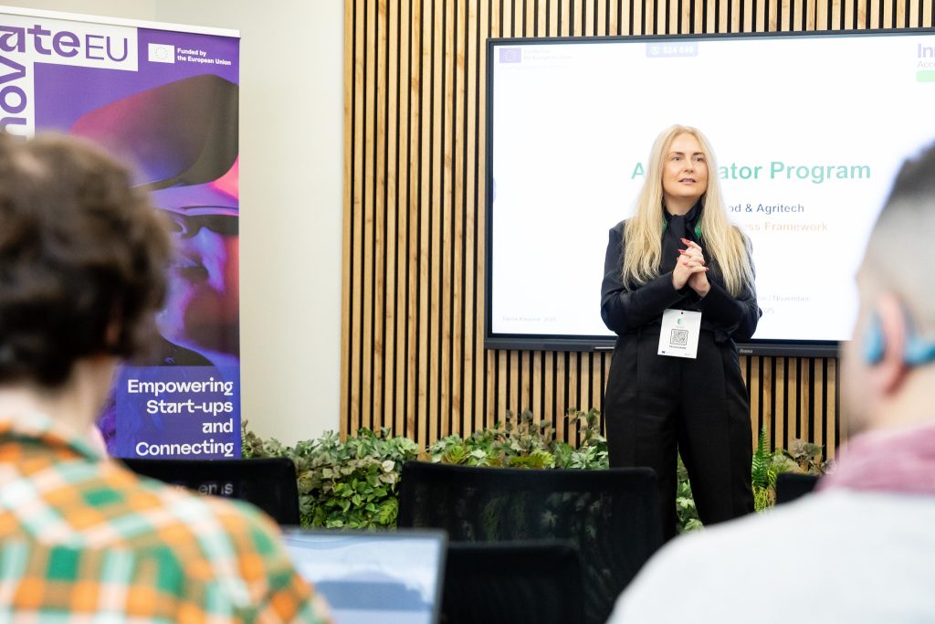 Pirmadienį Vilniaus kolegijoje prasidėjo ir tarptautinės iniciatyvos “INNOVATE-EU” Agro Akceleratoriaus” startas. „INNOVATE – EU“ programa siekiama sukurti tarpregioninį inovacijų paramos tinklą, susiejantį vietos ekosistemas su Europos lygio sprendimų priemėjais ir skatinantį tvarų tarpvalstybinį bendradarbiavimą. Siekima suteikti galių startuoliams: sukurti ir įgyvendinti tikslingas paramos priemones, įskaitant mokymus, mentorystę ir kontaktų užmezgimo galimybes, pritaikytas giliųjų technologijų novatorių poreikiams sveikatos, žaliųjų technologijų, žemės ūkio maisto produktų ir informacinių ir ryšių technologijų sektoriuose. “INNOVATE-EU” komanda subūrė agromaisto ekosistemos giliųjų technologijų startuolius į aktyvią akceleravimo programą, kurią koordinuoja šalyje gerai žinoma inovacijų ekspertė, VILNIUS TECH mokslininkė Daina Kleponė.