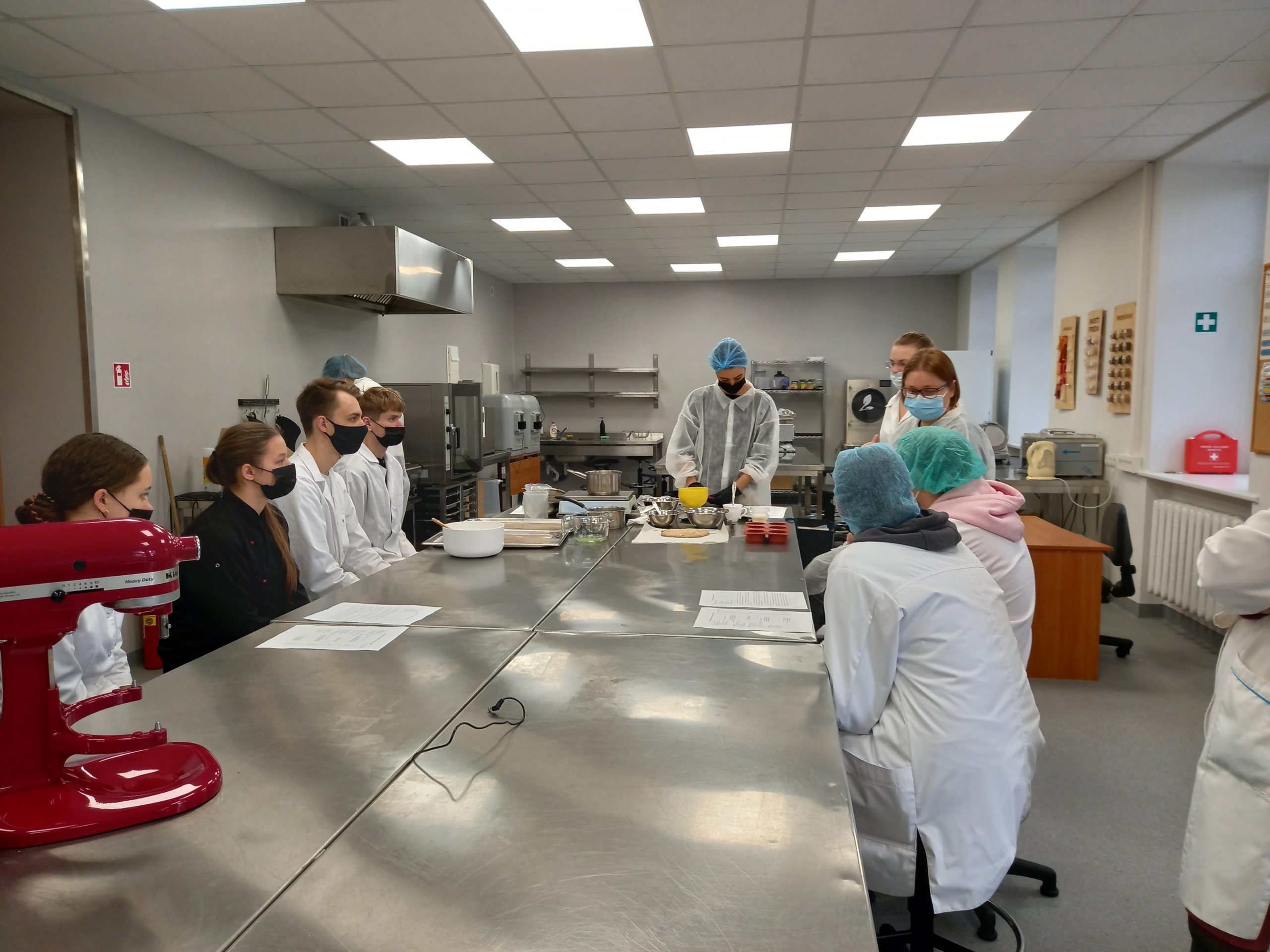 Maisto technologijos studijų programos studentai turėjo galimybę ne tik stebėti, bet ir dalyvauti gamybos procese, bendrauti, užduoti klausimus, taip pat degustuoti pagamintus desertus.
