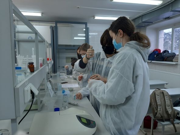 2021 m. gruodžio 3 d. Agrotechnologijų fakulteto Chemijos laboratorijoje įvyko praktikumų ciklai „Chemija – tai viskas, kas mus supa“, „Taninų kiekio nustatymas arbatžolėse“ ir „Chlorofilo (a, b) koncentracijos nustatymas augalinėje žaliavoje“ Kaišiadorių A. Brazausko gimnazijos 9-12 klasės moksleiviams, kuriuos lydėjo chemijos mokytoja Laima Sabaliauskienė.