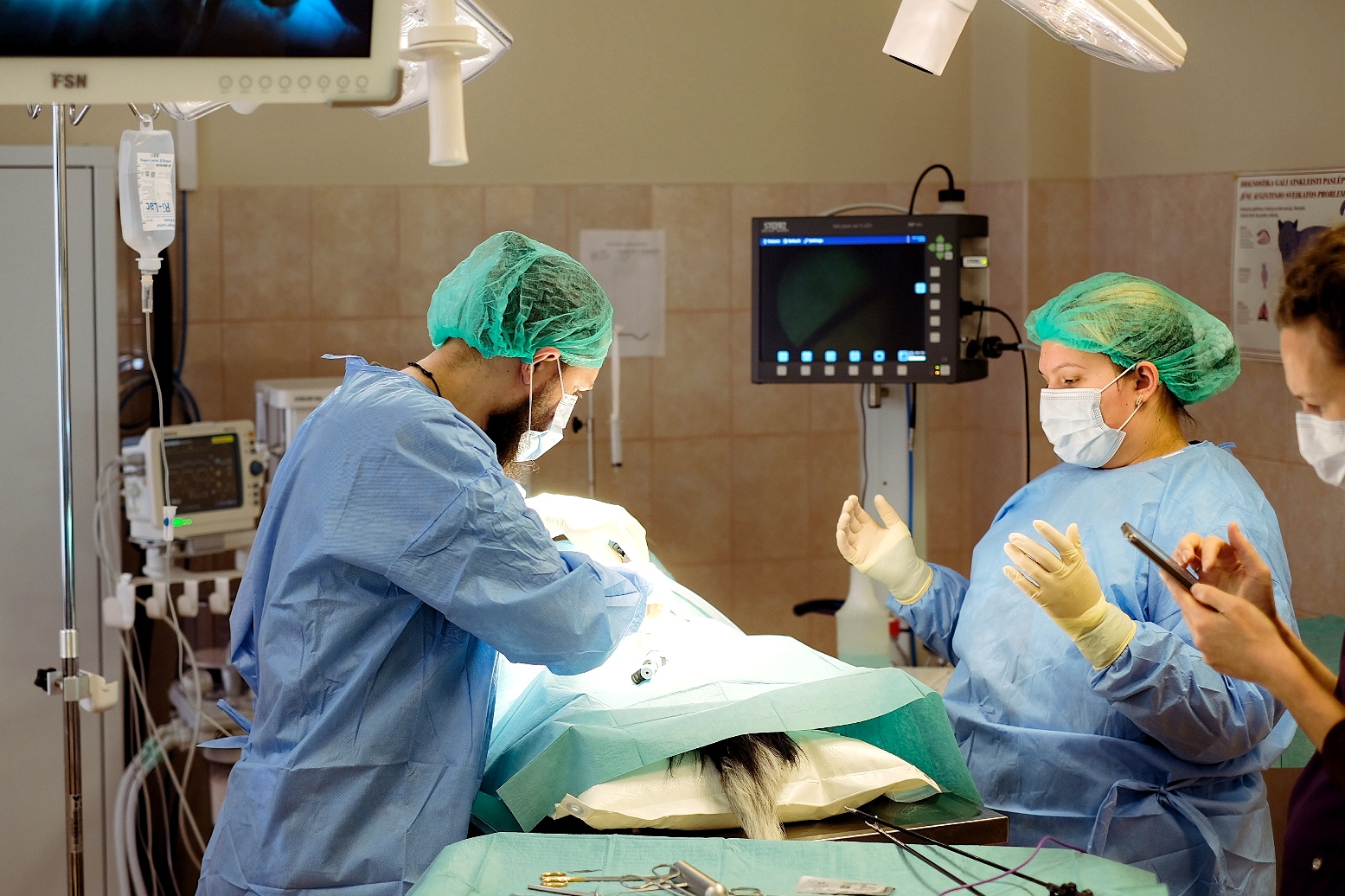 Veterinarijos klinika yra aprūpinta virtualios realybės įranga patrauklesnėms ir efektyvesnėms gyvūnų anatomijos studijoms; mobiliu lazeriu su priedais (lazerinė terapija – tai neinvazinė priemonė, naudojama kaip papildomas / alternatyvus gydymo būdas; lazerio technologija naudojama siekiant suteikti pacientams aukštos kokybės priežiūrą); elektrochirurginiu generatoriumi (tikslus ir efektyvus prietaisas chirurginėms procedūroms atlikti, sumažina pooperacines komplikacijas); endoskopu su priedais (endoskopija gyvūnų priežiūroje – minimaliai invazinė, leidžia atlikti išsamią diagnostiką ir chirurgines procedūras su mažesne rizika). Šuns manekenas, skirtas ginekologijos studijoms, leidžia veterinarijos studentams praktikuoti įvairias ginekologines procedūras ir atlikti diagnostiką, įgyti reikalingų įgūdžių ir užtikrinti, kad realiose situacijose procedūros būtų atliekamos saugiai ir efektyviai. Treniruoklis injekcijoms yra skirtas saugiai ir efektyviai injekcijų technikos praktikai. Įsigijome intubacijos modelį, kuris leidžia studentams saugiai ir efektyviai išmokti bei praktikuoti intubacijos procedūras, gerinti gyvūnų priežiūrą ir gydymą (intubacija užtikrina kvėpavimo takų praeinamumą ir tinkamą kvėpavimą kritinėse situacijose). Odontologijai skirta aparatūra (rentgenas) taikoma kaip diagnostinė ir gydymo įranga pacientų dantų sveikatos priežiūrai, o veterinarinis akispūdžiotonometras, kaip diagnostikos įrankis, padeda nustatyti ir valdyti akių ligas. Veterinarijos klinikos materialinė bazė pasipildė įvairiais veterinariniais preparatais ir kitomis priemonėmis.
