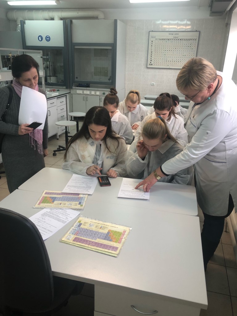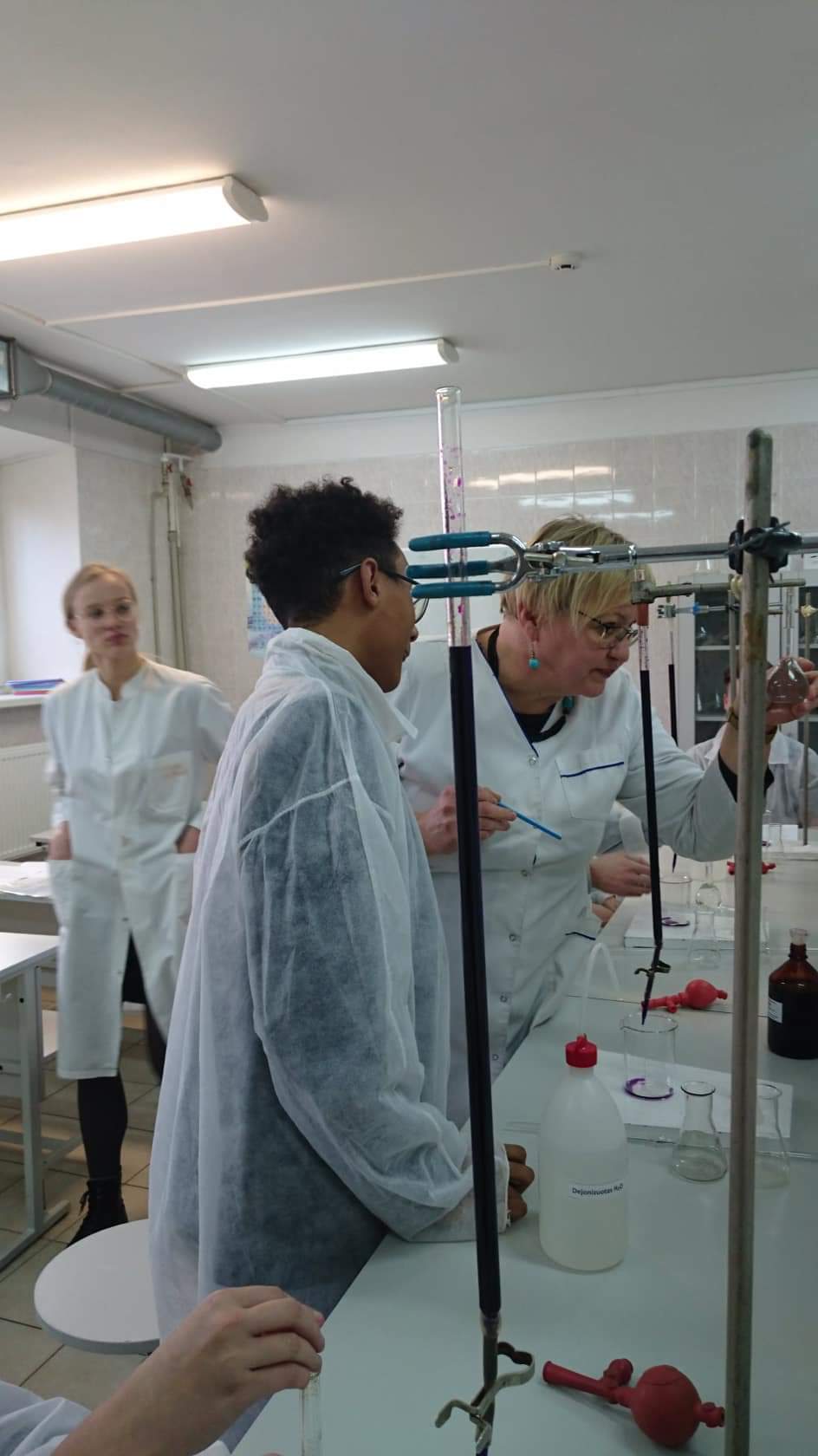 Moksleiviai atliko du eksperimentinius darbus. Vadovaujami dėstytojos Irenos ir laborantės Eglės jie nustatė geležies kiekį Moro druskoje. Vandenyje ištirpusio deguonies kiekį Vinklerio metodu moksleiviai nustatė vadovaujami dėstytojos Dalės Židonytės ir laborantės Viktorijos. Po to visi apskaičiavo ir aptarė rezultatus.