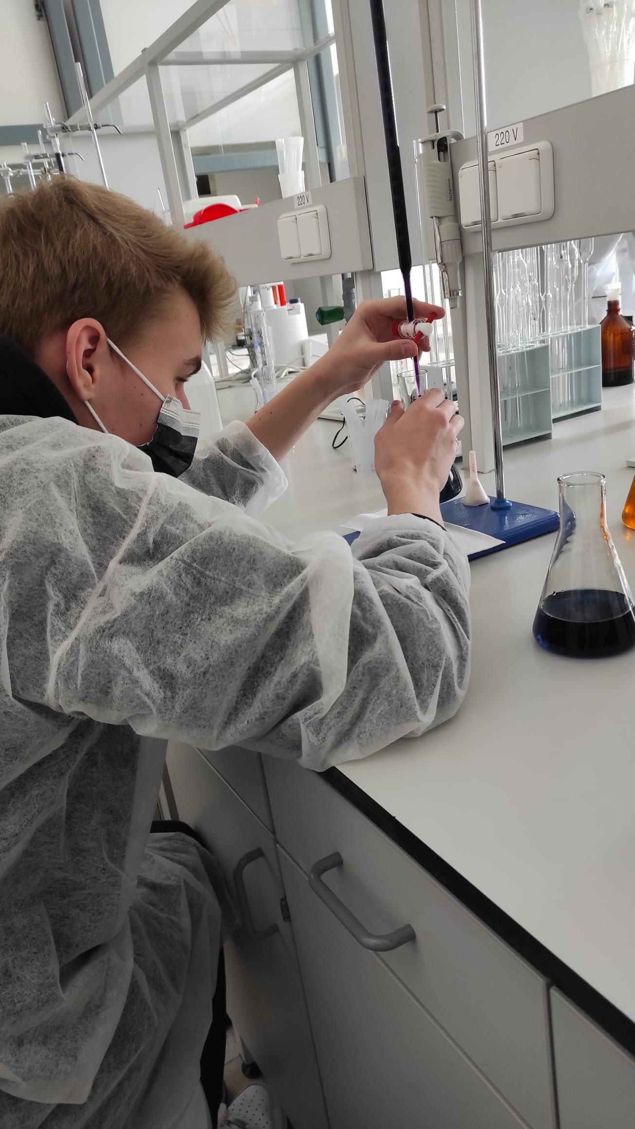 Vilniaus kolegijos Agrotechnologijų fakulteto Chemijos laboratorijoje 2022 m. kovo 25 d. įvyko „Chemija – tai viskas, kas mus supa“ praktikumai „Taninų kiekio nustatymas arbatžolėse“ ir „Chlorofilo (a, b) koncentracijos nustatymas augalinėje žaliavoje“ Vilniaus rajono Avižienių gimnazijos 11-12 klasės moksleiviams.