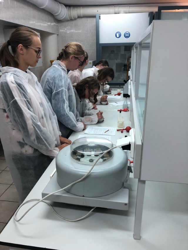 2018 m. birželio 11 d. Vilniaus kolegijos Agrotechnologijų fakulteto Chemijos laboratorijoje įvyko praktikumų ciklo „Chemija – tai viskas, kas mus supa“ praktiniai seminarai Alytaus Adolfo Ramanausko-Vanago gimnazijos 9-12 klasių moksleiviams, kuriuos lydėjo chemijos mokytoja ekspertė Janė Liutkienė ir Putinų gimnazijos chemijos mokytoja metodininkė Alvyra Geležauskienė.