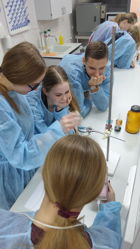 2016 m. lapkričio 30 d. Vilniaus kolegijos Agrotechnologijų fakulteto chemijos laboratorijoje vyko praktikumų ciklo „Chemija – tai viskas, kas mus supa“ praktinis seminaras „Organinių ir neorganinių junginių išskyrimas ir gryninimas“ Ukmergės r. Siesikų gimnazijos 9-11 klasių moksleiviams, juos lydėjo chemijos mokytoja Rita Lingienė.