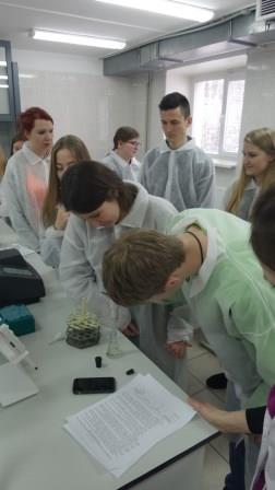 2016 m. kovo 22 d. Vilniaus kolegijos Agrotechnologijų fakulteto chemijos laboratorijoje įvyko praktikumų ciklo „Chemija – tai viskas, kas mus supa” praktinis seminaras „Šiuolaikiniai tyrimo metodai. Spektrometrija” Vilniaus m. Žvėryno gimnazijos 11 kl. moksleiviams, kuriuos lydėjo mokytoja l. Vičkačkienė. Praktiniame užsiėmime dalyvavo 13 moksleivių. Pradžioje buvo trumpai aptartas teorinis kursas apie šiuolaikinius instrumentinius tyrimo metodus, išsamiai išnagrinėta spektrofotometrinė analizė. Po to moksleiviai laboratorijoje, vadovaujami dėstytojos Dalės Židonytės, laborančių Jūratės ir Viktorijos, atliko eksperimentinį laboratorinį darbą „Chlorofilo (a, b) ir bendros karotinoidų koncentracijos nustatymas augalinėje žaliavoje“. Moksleiviai pagal metodiką iš įvairių prieskoninių žolelių paruošė spiritinius ekstraktus, kuriuose spektrofotometru nustatė mėginio šviesos sugertį ir apskaičiavo chlorofilo (a, b) bei bendrą karotinoidų koncentracijas.
