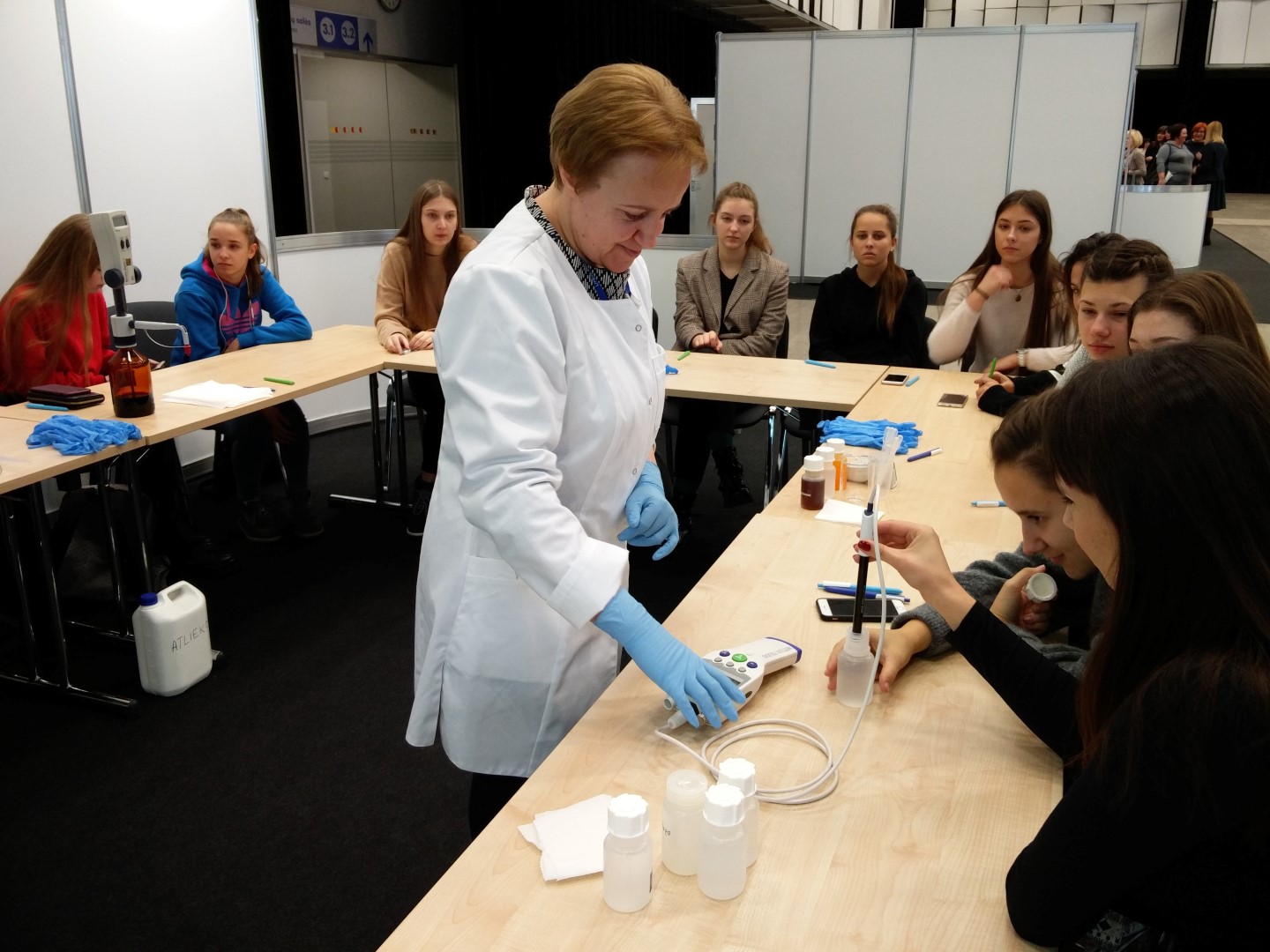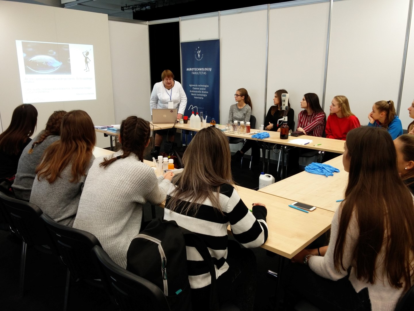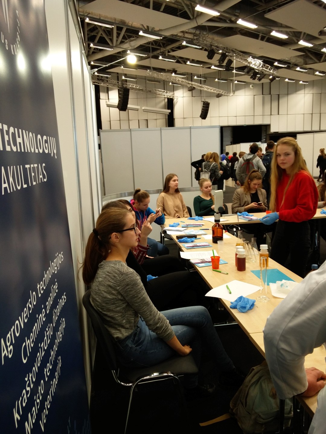 Manydamos, kad jaunimas vis labiau domisi kasdien vartojamų maisto produktų kokybe, girdi prieštaringos informacijos apie jų sudėtį, chemijos katedros lektorės Dalė Židonytė, Jolanta Jurkevičiūtė, Nijolė Ružienė pakvietė parodos dalyvius į kūrybinės laboratorijos renginį „Kaip išsklaidyti abejones dėl maisto sudėties“ ir pamėginti nustatyti kai kurių maisto produktų sudėtį patiems.