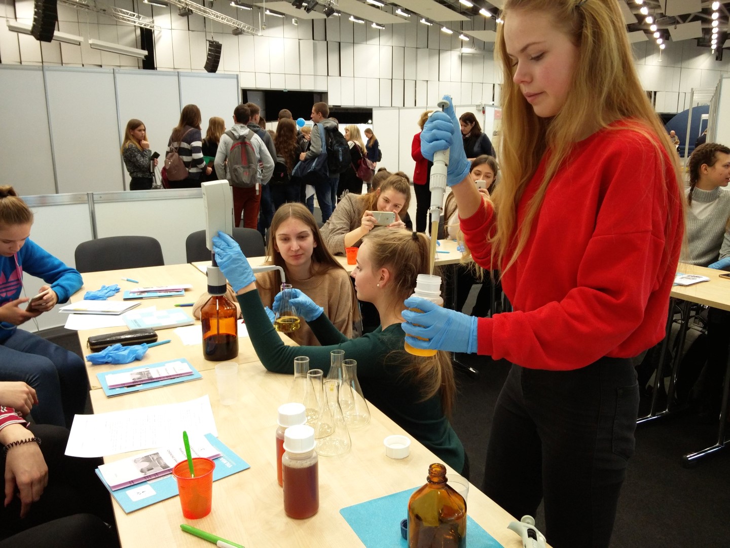 Į pagalbą pasitelkę fizikos ir chemijos žinias, kurias mokiniams išdėstė dėstytoja Dalė Židonytė, renginio dalyviai laboratorine įranga išmatavo gaiviųjų gėrimų šviesos lūžio rodiklį, kuris byloja apie cukraus kiekį juose. Su maistu ir vandeniu žmogus gauna organizmui reikalingų mineralinių medžiagų. Mineralinės medžiagos teikia vandeniui savotiškai malonų skonį, tačiau per didelis jų kiekis vandenį daro neskanų ir netinkamą gerti. Vandens mineralizacijai mažėjant, jo skonis blogėja. Vanduo be druskų yra netgi kenksmingas. Matuodami vandens savitąjį elektrinį laidį, mokiniai galėjo sužinoti įvairių rūšių vandens bendrą mineralizaciją. O kas nemėgsta arbatos? Joje yra biologiškai aktyvių medžiagų – taninų, kurių kiekį galima nustatyti taikant titrimetrinį analizės metodą. Kaip tai daroma, mokiniai išbandė patys.