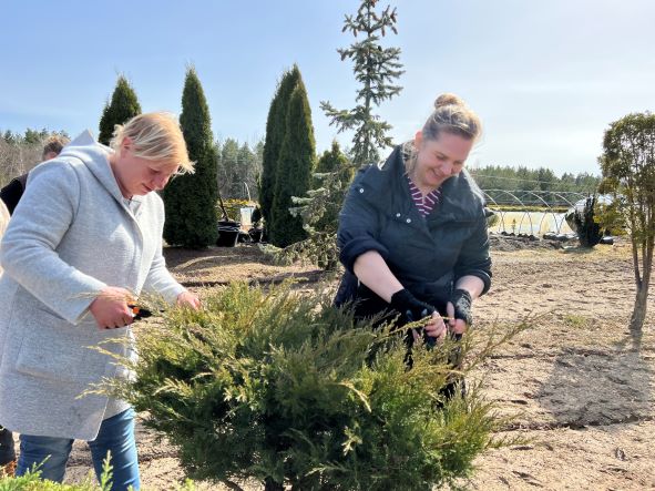 Lietuvos želdintojų ir dekoratyvinių augalų augintojų asociacijos bei UAB „Floralita dizainas” organizuotuose praktiniuose mokymuose apie dekoratyvinių augalų formavimą, skiepijimą ir didelių medžių persodinimą rankiniu būdu dalyvavo Kraštotvarkos ir agroverslo technologijos katedros vedėja dr. Gražina Palaitytė, lektorė dr. Inga Jančauskienė, dekoratyvinių augalų ir želdinimo centro VikoFlora vadovas Tomas Čižokas bei Kraštovaizdžio dizaino studijų programos studentai ir absolventai.