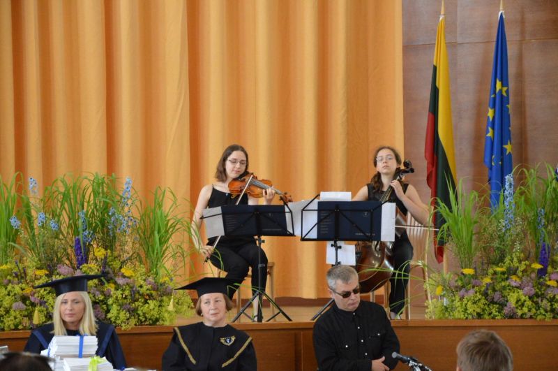 Muzikinius sveikinimus absolventams skyrė tarptautinių konkursų laureatės: Lina Juknevičiūtė,The Purcell School London absolventė, mokytoja Aistė Dvarionaitė ir Rugilė Juknevičiūtė Nacionalinės M.K. Čiurlionio mokyklos mokytojo Domo Jakšto auklėtinė.