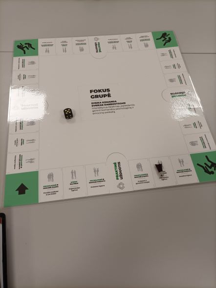 Mokymų dalyviai žaidė interaktyvų žaidimą „Fokus grupė“. Tai žaidimas ir metodas, leidžiantis lavinti komandos kritinio mąstymo, problemų sprendimo, komunikacijos ir atsparumo stresui gebėjimus. Žaidimo metu buvo sprendžiamos realios streso, emocinės įtampos, tarpasmeninių santykių problemų, nerimo situacijos nei reiškiniai, nutinkantys darbo aplinkoje. Žaidimo metu dalyviai lavino gebėjimą analizuoti savo ir kitų elgesį, atpažinti ir spręsti streso situacijas, komunikuoti komandoje, pasirinkti reagavimo taktiką ir didinti atsparumą stresui.