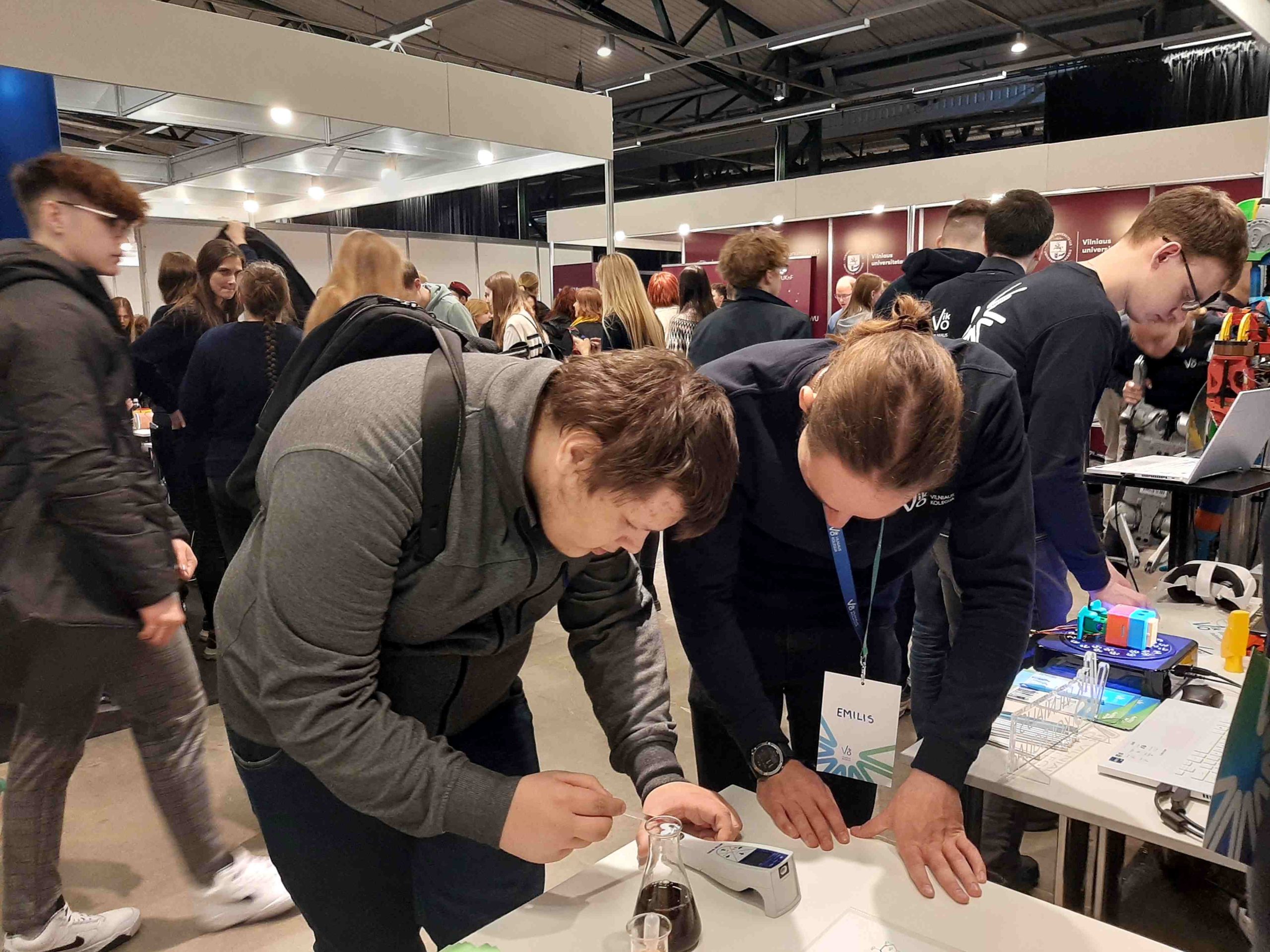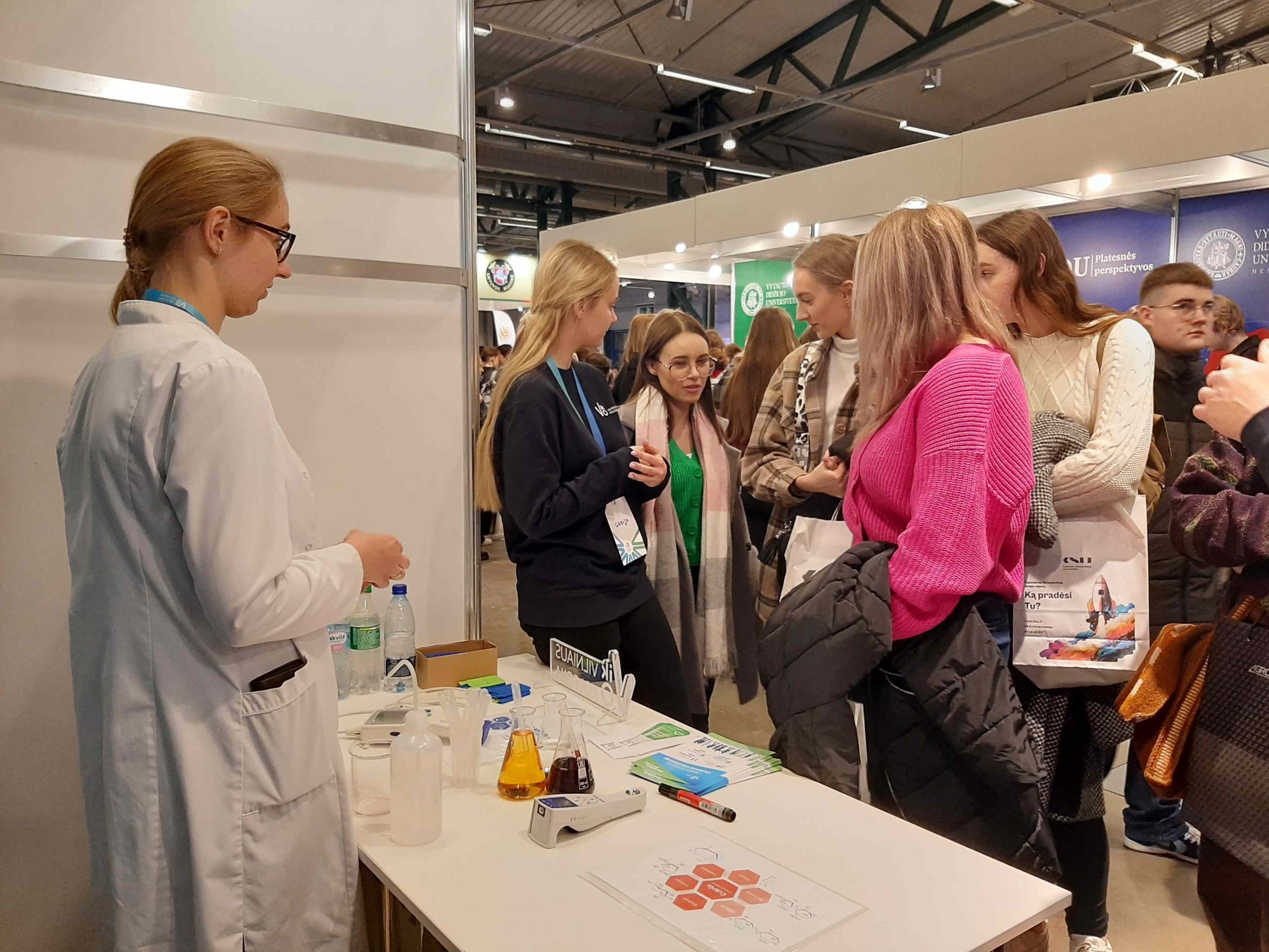 Kovo 30-31 d. „Litexpo“ parodų ir kongresų centre vyko paroda „Karjera & studijos 2023“, kurioje dalyvavo Maisto technologijos ir Cheminės analizės katedros dėstytojai ir studentai. STEAM inovacijų stende per praktines veiklas jie pristatė Cheminės analizės ir Maisto technologijų studijų programas. Moksleiviai turėjo galimybę kelioms minutėms tapti chemiku tyrėju ir maisto ekspertu. VIKO inovacijų stende moksleiviai galėjo taikyti instrumentinius tyrimo metodus, nustatant druskų kiekį mineraliniame vandenyje, cukraus kiekį gaiviuosiuose gėrimuose, atsakyti į maisto gamybos technologijų, maisto kokybės, produktų ženklinimo klausimus. Teisingai atsakę buvo apdovanoti studentų pagamintais valgomais prizais.