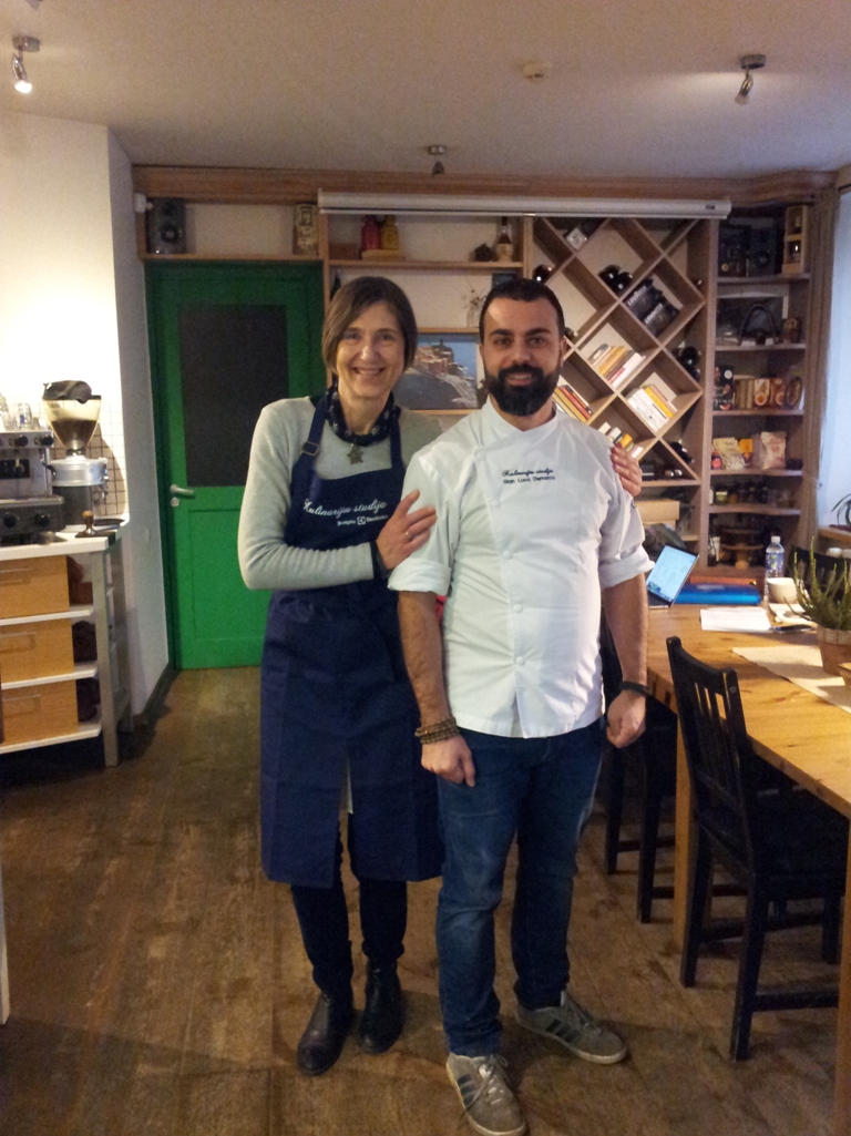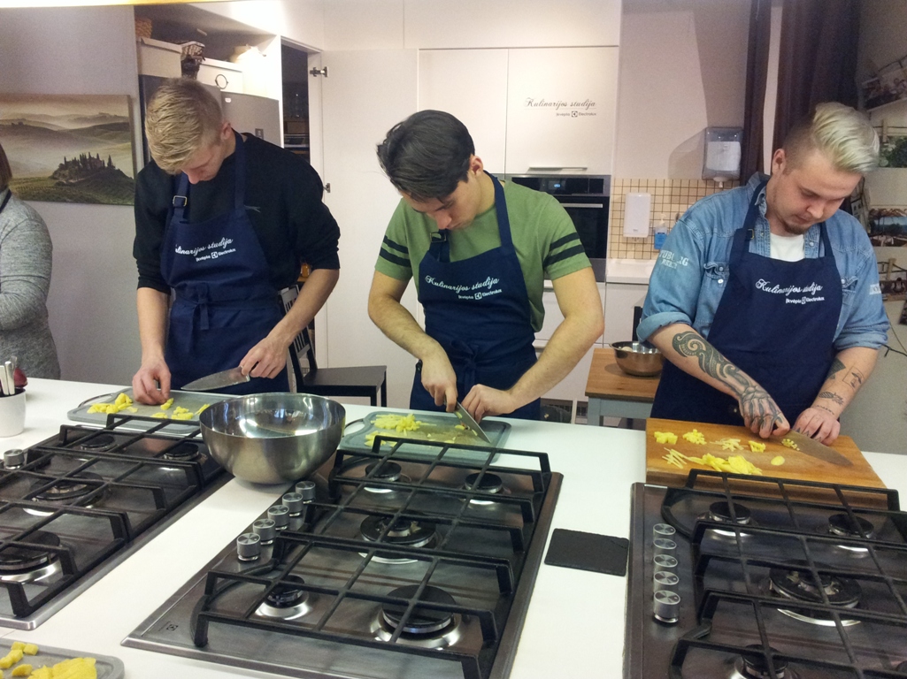2017-11-02 Maisto technologijos studijų programos pirmakursiai Rūta Kniežaitė, Ąžuolas Gudukas, Paulius Vepštas, Domantas Povilaitis, lektorės Elena Surkienė ir Laimutė Milašienė dalyvavo tęstiniuose mokymuose „Kulinarijos studija“, kuri yra tarptautinio kulinarinio instituto IFSE padalinys Lietuvoje. Studijai vadovauja virtuvės šefas Gian Luca Demarco. Tai buvo antrasis maistininkų susitikimas su įžymiu Italijos maisto gamybos šefu Gian Luca. Vyko praktinės treniruotės, pasiruošiamieji darbai, pamokymai, nuo chemijos iki technologijų, kurių metu studentai turėjo galimybę sukurti kompozicijų iš daržovių, vakuumuoti ir pasidžiaugti savo meniškais darbais. Maisto technologijos katedros studentai lapkričio 9-11 d. dalyvaus Baltijos šalių Maisto ir gėrimų parodoje 2017 Electrolux virtuvės studijoje-scenoje (LITEXPO). Čia vyks užsiėmimas (workshop‘as), kurio metu studentai drauge su Luca Demarco mokins lankytojus naudotis Elektrolux vakuumavimo technologijomis, padės parodos lankytojams gražiai supjaustyti, išdėlioti, įpakuoti bei vakuumuoti produktus, meniškai išpildyti savo „suvenyrus“. Kiekvienas workshop‘o dalyvis pasibaigus užsiėmimui su savimi turės suvenyrą – originaliai paruoštą vakuumavimo maišelį su gražiai įpakuotais produktais. Kviečiame apsilankyti parodoje, laukia prizai…