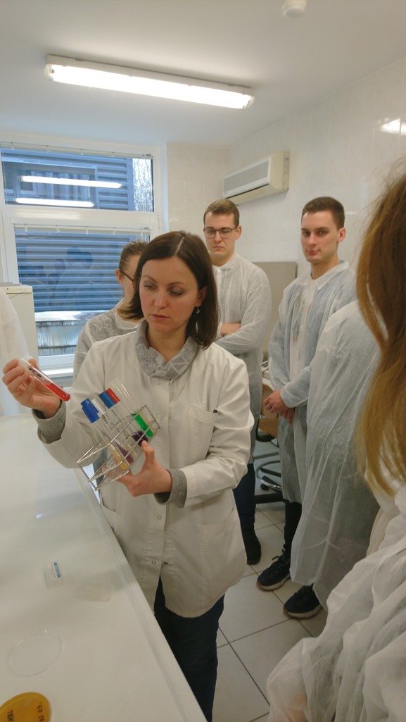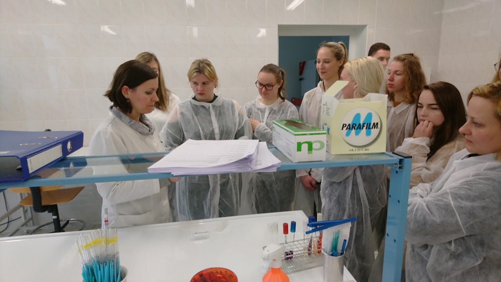 2020-02-06 Nacionaliniame maisto ir veterinarijos rizikos vertinimo institute ATF Maisto technologijos studijų programos MT18 gr. studentai ir dėstytojos V. Romanovienė ir L. Milašienė dalyvavo Maisto saugos ir kokybės modulio mokomojoje ekskursijoje. NMVRVI yra Maisto technologijos katedros socialinis partneris. Ekskursijos tikslas – teorinių žinių gilinimas ir praktinių įgūdžių tobulinimas. Uždaviniai: susipažinti su maisto produktų mikrobiologinių tyrimų, bakteriologijos skyriais ir juose atliekamais maisto produktų mikrobiologiniais tyrimais, taikomais mikrobiologinės taršos įvertinimo metodais, jusliniais analizės metodais.