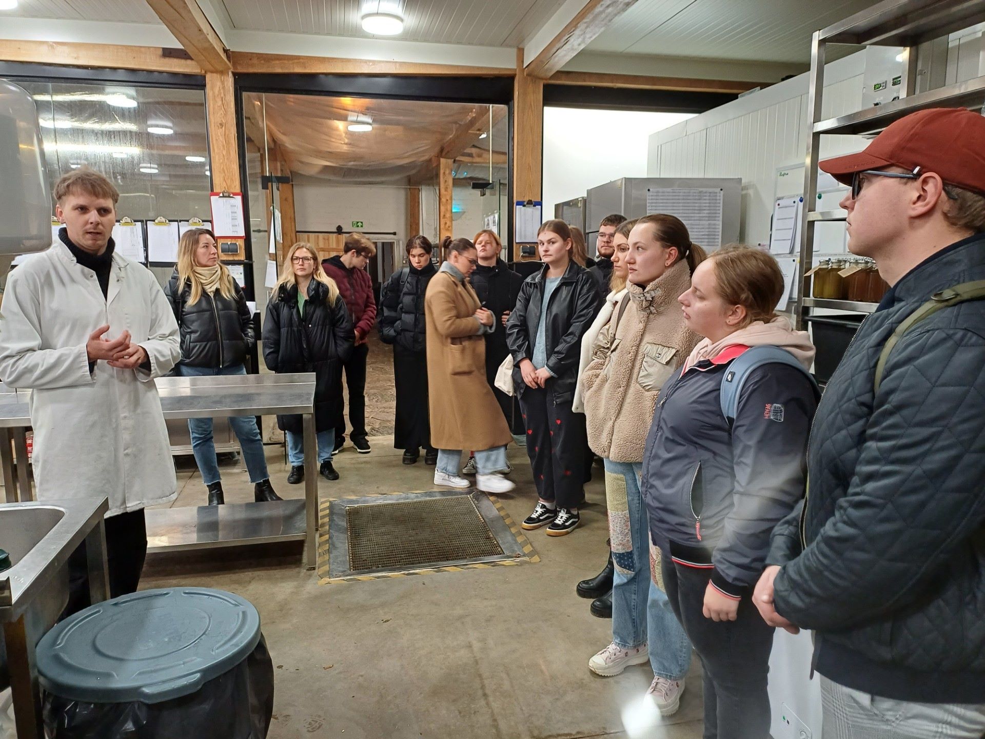 Žaliavos perdirbimo ir produkcijos gamybos cecho vadovas ir technologas Sigitas Pūkys studentams papasakojo apie ekologiškų produktų gamybą, siekiant išgauti ypatingas skonines savybes, parodė cechą, jame esančią įrangą, papasakojo apie naujų produktų kūrimo eigą, kaip gimsta naujų receptų idėjos. Studentai turėjo galimybę stebėti ir gamybos eigą.
