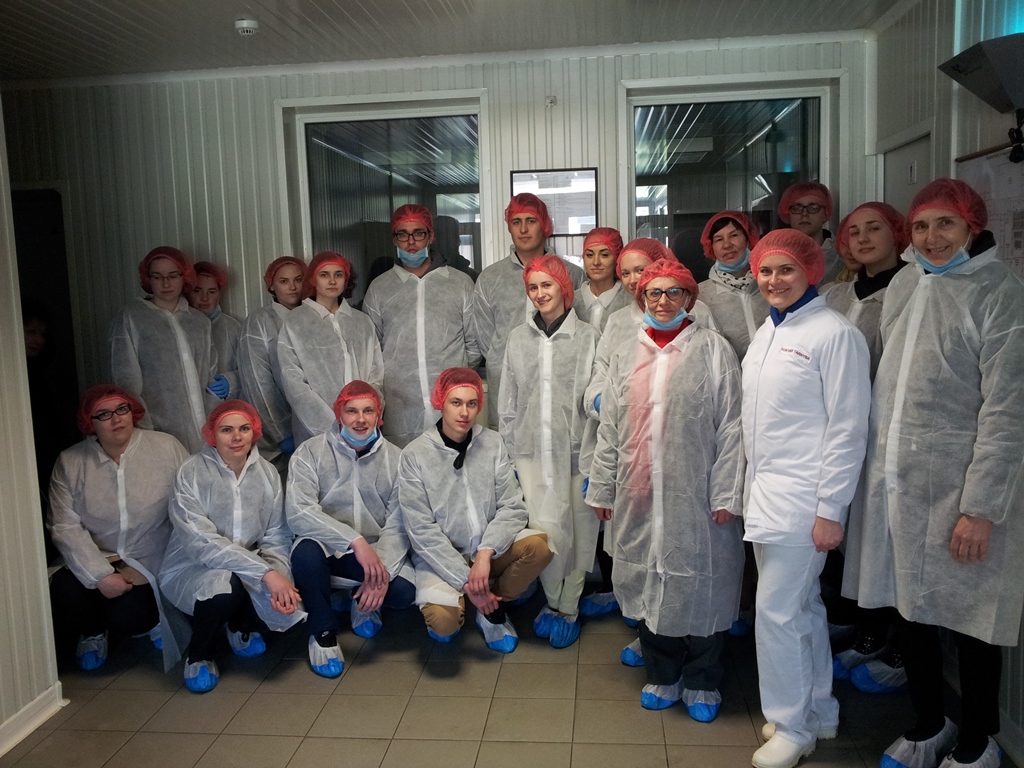 Su šviežios mėsos verslu, gamyba, perdirbimu, technologijomis, įranga supažindino AB „Vilniaus paukštynas“ kokybės kontrolės vadovė Irena Laginauskienė. Į gamybines patalpas asmenys įleidžiami tik su specialia apranga, laikomasi visų privalomų higienos ir sanitarijos reikalavimų ir dar daugiau nei kitose mėsos perdirbimo įmonėse. Pažintis su gamyba prasidėjo nuo galutinio technologinio proceso etapo (pakavimo ir ženklinimo, išleidžiamos produkcijos) iki pradinio etapo (paukščių skerdimo ir priėmimo), t.y., pradedant nuo švariosios zonos ir užbaigiant nešvariąja zona. Paukščių skerdimo ir perdirbimo ceche įdiegtos modernios linijos, paukščių iškrovimo procesas yra pilnai automatizuotas. Visa išpjaustyta vištienos krūtinėlių filė kalibruojama pagal svorį. Nuo pagamintos filė atskiriama mažoji filė, kurios apie 50 proc. yra išgyslinėjama ir kalibruojama pagal svorio grupes. Įmonėje įrengtos našios ir modernios srovinės pakavimo linijos, vertikalūs pakuotuvai, formuojantys indelius pakuotuvai, indelių pakavimo ir apvyniojimo linijos. Produkcija sandėliuojama šiuolaikiškose saugyklose, o iš jų vyksta produkcijos pristatymų paskirstymas pagal klientus. Įrengta vištienos dalių kalibravimo įranga, kuri gali pagal svorius suskirstyti ketvirčius, kulšis, blauzdeles ir filė produktus. Taip pat sumontuoti modernūs vištienos produktų apdorojimo įrengimai: filetavimo, mėsos išploninimo įrengimai; šviežios mėsos skerdenos dalių rūšiavimo linijos, pjaustymo įranga, kuri horizontaliai pjaudama pagamina ne tik vienodo svorio, bet ir vienodos formos pjaustytą filė. Kokybės vadovė Irena paaiškino, kad visi gamybos cechai yra sertifikuoti pagal naujausios BRC standarto versijos reikalavimus ir atitinka A kategoriją, taip pat yra sertifikuoti šviežios atvėsintos vištienos tiekėjai į tarptautinį restoranų tinklą „KFC“. Įmonėje vykdoma „Halal” produktų gamyba, atitinkanti šiems produktams keliamus reikalavimus. Studentams tai buvo galimybė ne tik pamatyti, susipažinti, bet ir užtvirtinti bei papildyti savo teorines žinias.