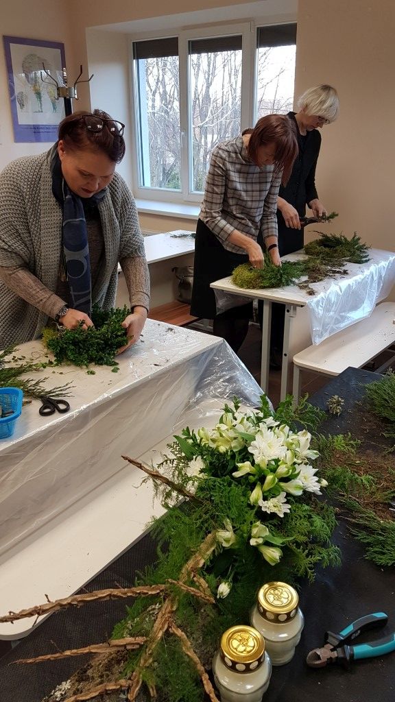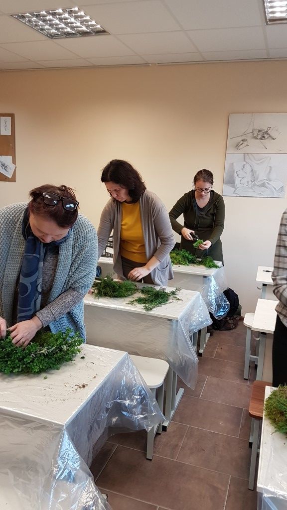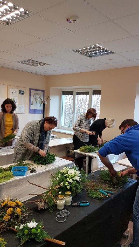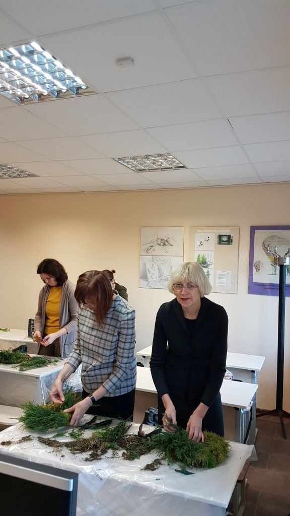 VK Agrotechnologijų fakulteto Kraštotvarkos ir agroverslo technologijos katedroje 2019 m. spalio 29 d., vyko vidiniai mokymai „Gedulingų kompozicijų kūrimas iš gamtinių medžiagų ir pritaikymas kapinių dekoravime“. Mokymus vedė dekoratyvinių augalų ir želdinimo centro „VikoFlora“ vadovas Tomas Čižokas. Susirinkusiems dalyviams buvo pristatytos kapinių dekoravimo tendencijos, supažindinta su skirtingomis dekoravimo priemonėmis ir variantais, aptartos gamtinės medžiagos, naudojamos kompozicijų kūrime, jų rinkimas ir paruošimas darbui. Praktinio užsiėmimo metu kiekvienas dalyvis pasirinktinai galėjo susikurti norimą kompoziciją. Didelio susidomėjimo sulaukė vainikai, kurie buvo gaminami iš penkialapio vinvyčio stiebų, samanų, dekoravimui naudoti kazokinio kadagio, buksmedžio, puskiparisio šakelės ir džiovintos gėlės. Artėjant Vėlinėms, šie originalūs vainikai subtiliai ir stilingai papuoš artimųjų kapus.