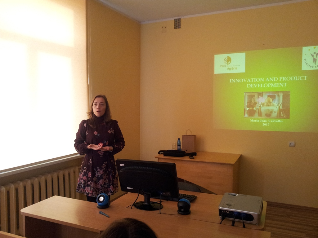 2017 m. spalio 23 – 27 dienomis pagal Erasmus+ dėstymo programą Agrotechnologijų fakultete lankėsi dėstytoja Maria Joao Barata de Carvalho iš Bejos Politechnikos Instituto, Portugalija. Ji skaitė paskaitas Maisto technologijos studijų programos studentams. Vizito metu pristatė savo šalį, Bejos Politechnikos Institutą, fakultetus, vykdomas studijų programas bei pakvietė mūsų maisto technologijos studijų programos studentus aktyviai dalyvauti Erasmus+ mainų programoje studijoms/praktikai Portugalijoje. Skaitytos paskaitos temomis: Juslinė analizė skirtingose maisto produktų matricose; Inovacijos ir produktų plėtra; Instrumentinė tekstūros analizė ir juslinė analizė kaip maisto plėtros instrumentai buvo dalykiškos, naudingos, aktualios, suprantamos ir labai įdomiai perteiktos.