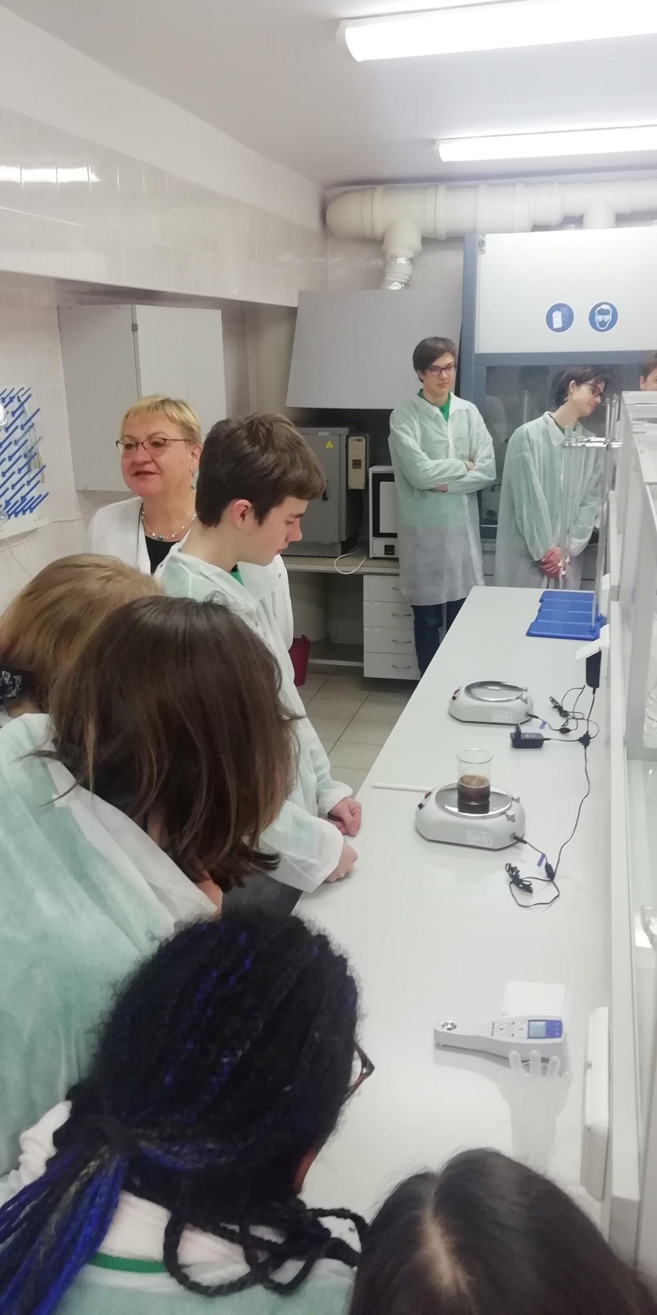 Dėstytoja su moksleiviais aptarė saugaus darbo chemijos laboratorijoje taisykles, o paskui nagrinėjo gaiviųjų gėrimų sudėtį, jų poveikį žmogaus organizmui, supažindino su cukrų ir fosforo rūgšties nustatymui naudojamais analizės metodais, praktikume naudojama įranga ir medžiagomis.