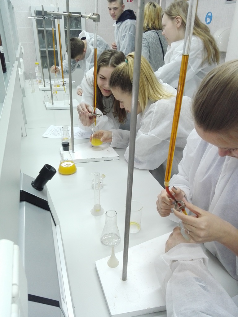 Chemijos laboratorijoje įvyko praktikumų ciklo „Chemija – tai viskas, kas mus supa“ praktikumas tema: „Jodometrija. Vitamino C nustatymas vaisių sultyse“ Vilniaus rajono Marijampolio Meilės Lukšienės gimnazijos moksleiviams, kuriuos lydėjo chemijos mokytoja. Seminare dalyvavo penkiolika 1-3 kl. moksleivių. Dėstytoja Dalė Židonytė pristatė Agrotechnologijų fakultete vykdomas studijų programas, supažindino moksleivius su studijų programa Cheminė analizė, aptarė saugaus darbo chemijos laboratorijoje taisykles, moksleiviai pasirašė saugos ir sveikatos instruktavimų kortelėje. Dėstytoja paaiškino titrimetrijos metodo esmę, metodus, supažindino su darbe naudojamomis medžiagomis ir aptarė praktikumo eigą. Po to moksleiviai, vadovaujami dėstytojos Dalės ir laborantės Viktorijos, įvairiose vaisių sultyse nustatė vitamino C kiekį jodometriniu metodu, apskaičiavo bei aptarė rezultatus.