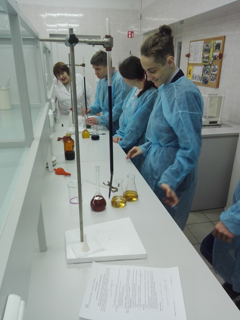 2017 m. kovo 13 d. Vilniaus kolegijos Agrotechnologijų fakulteto Chemijos laboratorijoje įvyko praktikumų ciklo „Chemija – tai viskas, kas mus supa” praktinis seminaras tema: „Titrimetrija. Jodometrija ir Permanganatometrija“ Kaišiadorių A. Brazausko gimnazijos moksleiviams, kuriuos lydėjo chemijos mokytoja Laima Sabaliauskienė. Seminare dalyvavo aštuoniolika 9 kl. moksleivių. Chemijos katedros vedėja I. Čerčikienė pristatė Agrotechnologijų fakultete vykdomas studijų programas, supažindino moksleivius su studijų programa Cheminė analizė, aptarė specializacijas Cheminiai ir Biocheminiai tyrimai, supažindino su praktikomis, karjeros galimybėmis, Studentų mokslinės draugijos veikla, taip pat supažindino su saugaus darbo Chemijos laboratorijoje taisyklėmis. Dėstytoja I. Čerčikienė pristatė titrimetrijos metodo esmę, metodus, supažindino su darbe naudojamomis medžiagomis ir aptarė laboratorinio darbo eigą. Po to moksleiviai, vadovaujami dėstytojos I. Čerčikienės ir laborantės Karolinos, atliko laboratorinį darbą „Vitamino C nustatymas vaisių sultyse“. Įvairiose sultyse nustatė vitamino C kiekį jodometriniu metodu ir apskaičiavo bei palygino rezultatus.
