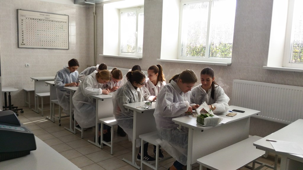 Dėstytoja Dalė Židonytė su kita moksleivių grupe trumpai aptarė šiuolaikinius instrumentinius tyrimo metodus bei spektrofotometrinę analizę. Laboratorijoje moksleiviai, vadovaujami dėstytojos ir laborantės Viktorijos bei SMD narės Reginos, atliko eksperimentinį laboratorinį darbą „Chlorofilo (a,b) ir bendros karotinoidų koncentracijos nustatymas augalinėje žaliavoje“. Moksleiviai pagal metodiką iš įvairių prieskoninių žolelių paruošė spiritinius ekstraktus, kuriuose spektrofotometru nustatė mėginio šviesos sugertį, apskaičiavo chlorofilo (a,b) ir bendrą karotinoidų koncentracijas bei aptarė rezultatus.