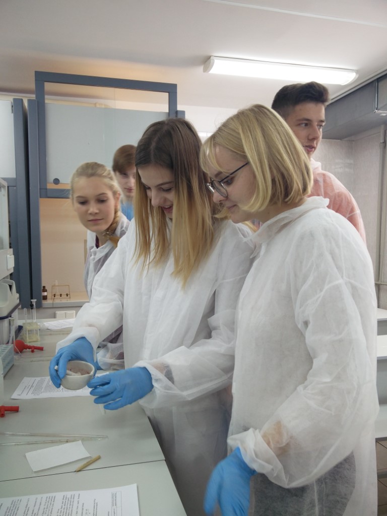 2018 m. spalio 12 d. Vilniaus kolegijos Agrotechnologijų fakulteto Chemijos laboratorijoje įvyko praktikumų ciklo „Chemija – tai viskas, kas mus supa” praktinis seminaras Vilniaus rajono Riešės gimnazijos 9 – 12 klasių moksleiviams. Praktiniame seminare dalyvavo 15 moksleivių, juos lydėjo chemijos mokytoja Alicija Bilinska.