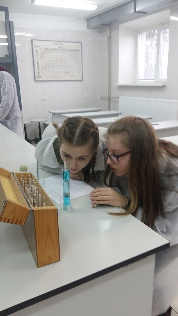 Chemijos katedros vedėja Irena Čerčikienė teoriškai išnagrinėjo procentinių tirpalų gamybos ypatumus, supažindino su medžiagomis ir naudojamomis priemonėmis, aptarė darbo eigą. Po to moksleiviai pasidalino į dvi grupes, vadovaujami lektorių I. Čerčikienės ir D. Židonytės, laborančių Viktorijos ir Karolinos, moksleiviai atliko praktikumą „Procentinės koncentracijos tirpalų gamyba ir koncentracijos nustatymas areometru”.