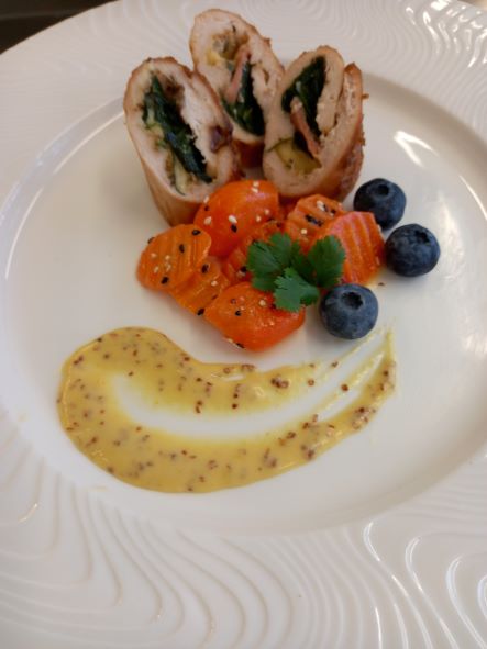 Proginių pietų asortimentą sudarė užkandžiai, karšti patiekalai ir desertas. Studentai ir mokiniai kartu pagamino vištienos suktinukus su svieste glazūruotomis morkomis ir sezamais, pagardintais apelsinų padažu su grietinėle ir garstyčiomis, trintą pomidorų sriubą su česnakiniais skrebučiais, keptą antį, įdarytą apelsinais su keptų obuolių ir aviečių tyrės garnyru ir desertą „Drebučių trio“.