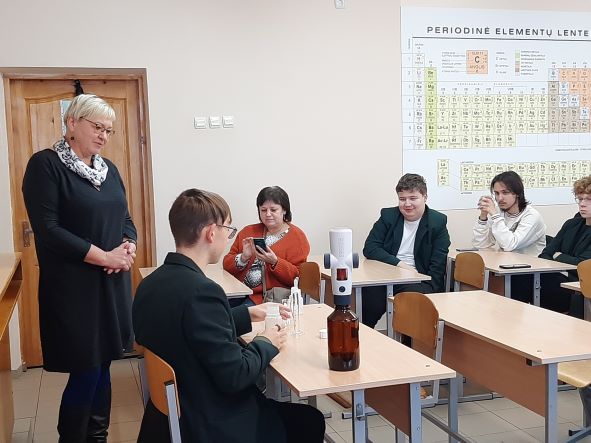Lapkričio 22 d. Radviliškio Lizdeikos gimnazijoje Vilniaus kolegijos Agrotechnologijų fakulteto dėstytojos I. Čerčikienė, J. Lazdauskienė ir J. Jurkevičiūtė pristatė ir supažindino mokinius su Vilniaus kolegijos Cheminės analizės ir Maisto technologijos studijų programomis. Mokiniai turėjo galimybę sudalyvauti praktimuose „Ar sultys yra elektrolitas?“ ir “Maisto produktų juslinė analizė. Atpažink 4 pagrindinius skonius“. Praktiniame užsiėmime „Ar sultys yra elektrolitas?“ moksleiviai nagrinėjo elektrolitų savybes, jų funkcijas žmogaus organizme, vaisių sulčių sudėtį, vitamino C savybes ir šaltinius. Įvairių vaisių sultyse moksleiviai konduktometru išmatavo mineralinių medžiagų kiekį, o jodometrijos metodu nustatė vitamino C kiekį bei aptarė tyrimo rezultatus.