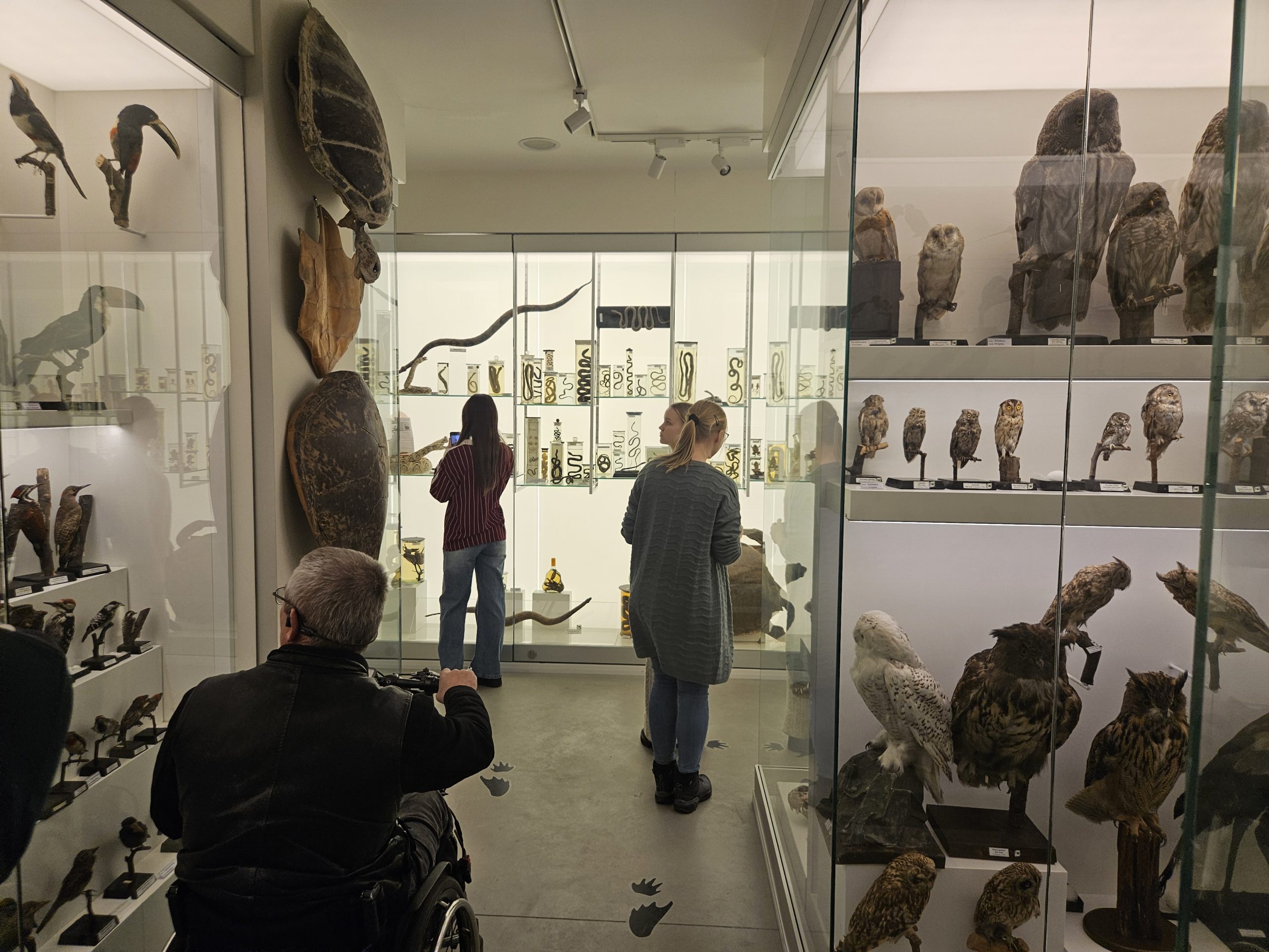 Zoologijos muziejaus darbuotoja Viktorija Kuznecova supažindino studentus su muziejaus istorija ir vykdomomis mokslinėmis, mokomosiomis, pažintinėmis veiklomis bei aprodė ir išsamiai papasakojo apie muziejuje laikomas, eksponuojamas gyvosios gamtos ir biologinės įvairovės kolekcijas, tarp kurių buvo pristatomos stuburinių (žuvų, paukščių, žinduolių, varliagyvių, roplių) ir bestuburių (kirmėlių, nariuotakojų, voragyvių, vabzdžių) ir kt. retų, saugomų bei invazinių gyvūnų rūšių kolekcijos. Muziejuje buvo apstu ne tik meistriškai sukurtų iškamšų ir eksponatų, bet ir atskirų rūšių kūno dalių, kurios leido iš arčiau susipažinti su įvairių gyvūnų anatominiais panašumais, skirtumais, jų vystymosi ir brandos stadijomis, galimomis anomalijomis, taip pat lotyniška terminologija ir pan. Specialistė Viktorija ne tik nuodugniai pateikė kiekvienos grupės fenotipines ar genotipines sąsajas, tačiau ir pabrėžė gyvūnų socialinio gyvenimo svarbą bei emocinio intelekto pranašumus tarp skirtingų rūšių.