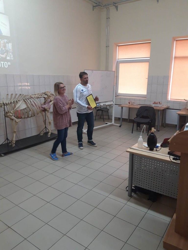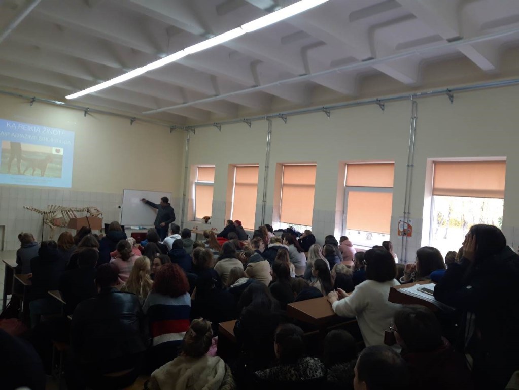 Veterinarinės medicinos katedroje 2019 m. spalio 9 d. lankėsi socialinio partnerio UAB Zooveterinarijos Centras „TOTO“ atstovas – veterinarijos gydytojas-kardiologas Orestas Vovk. Veterinarijos gydytojas mūsų studentams bei dėstytojams – veterinarijos gydytojams skaitė paskaitą tema „Ką veterinarijos felčeris turėtų žinoti apie šunų ir kačių širdies ligas“. Paskaitos metu klausytojai sužinojo, kaip reikia fiksuoti ir paruošti apžiūrai širdies problemų turinčius gyvūnus, buvo supažindinti su pagrindiniais širdies ligų požymiais, diagnozavimo metodais. Savanoriai studentai pagal gydytojo nurodymus ant šuns muliažo atliko širdies masažą, plaučių ventiliaciją, taip pat turėjo galimybę užpildyti pirmosios pagalbos protokolą, susipažindinti su kardiografijos atlikimo eiga. Dėkojame veterinarijos gydytojui – kardiologui Orestui Vovk už išsamią, linksmą ir nuoširdžią paskaitą, kuri sudomino ne tik mūsų studentus, bet ir dėstytojus!